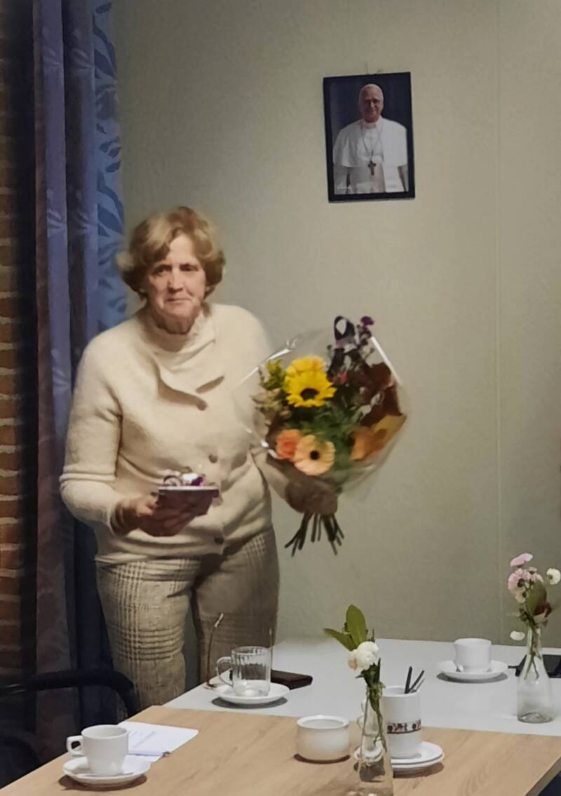 José Gal is 15 jaar vrijwilligster bij De Zonnebloem Haarle. Ze werd thuis verrast met een boeket bloemen. Een officieel tintje volgt later nog bij een vergadering van De Zonnebloem. José bedankt voor jouw inzet.